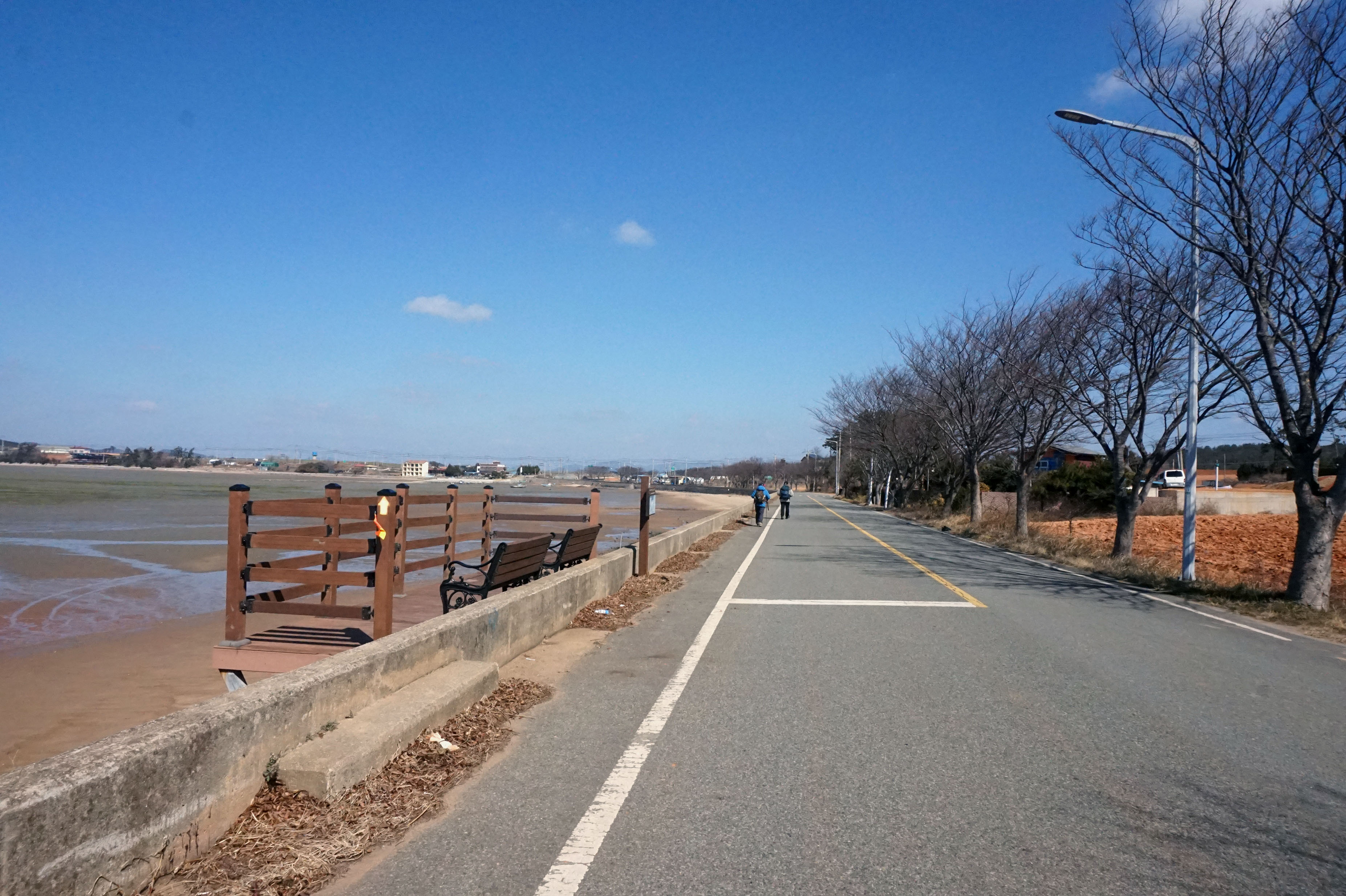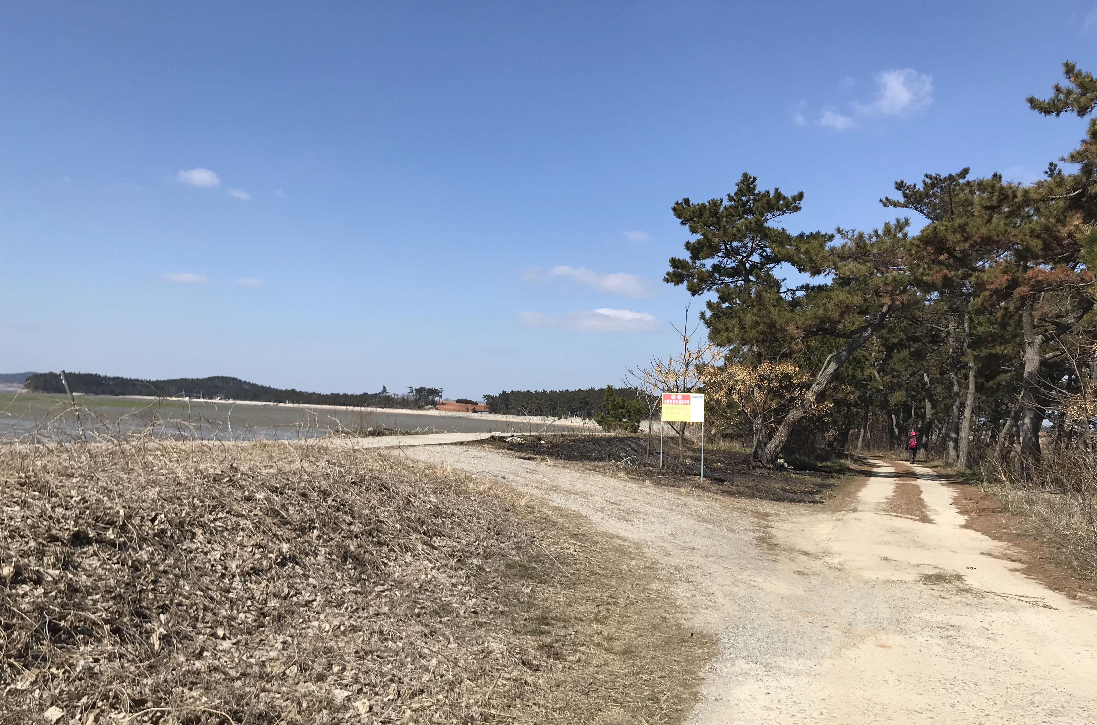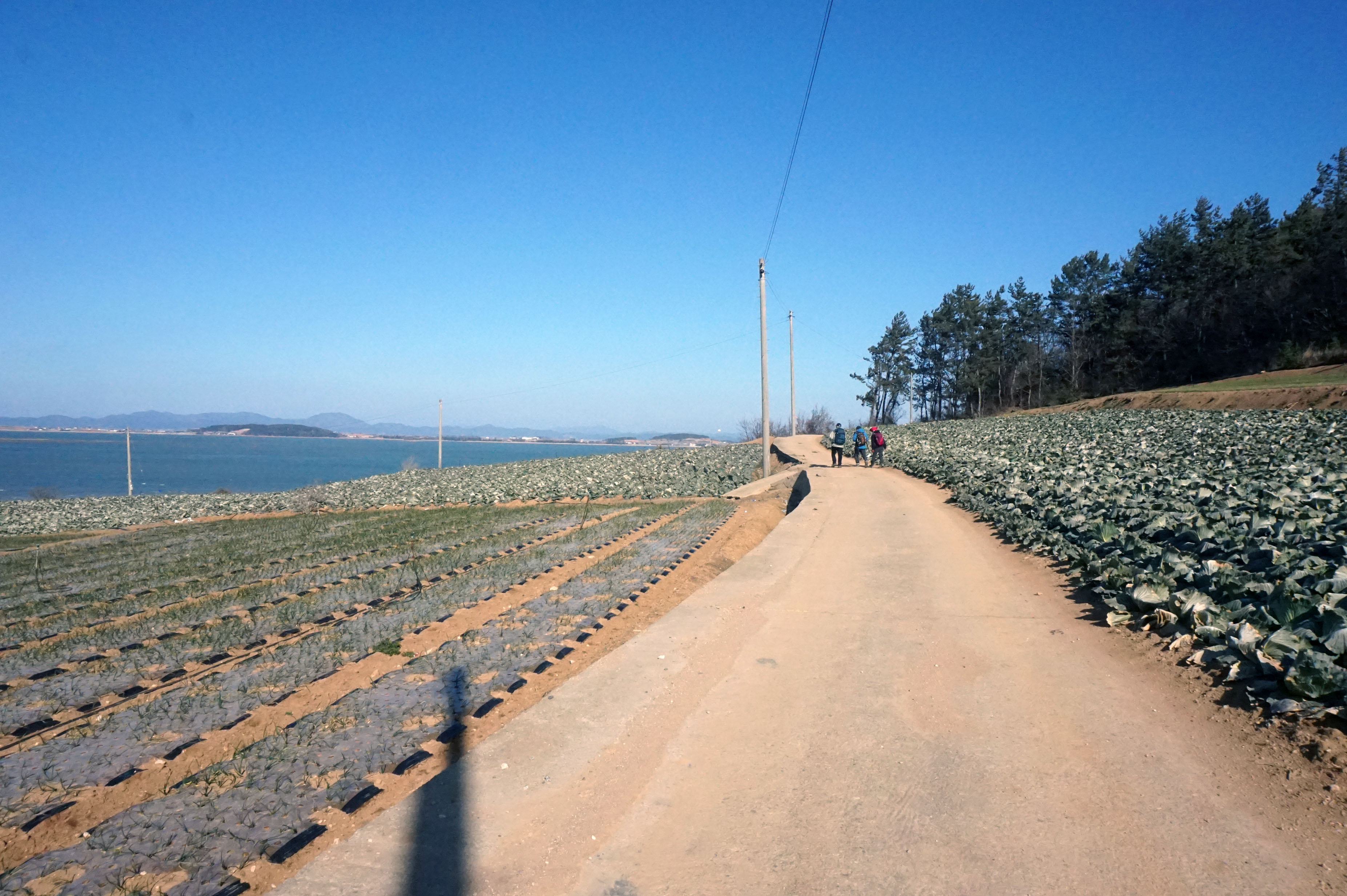 < 11:21, 방조제 제방 아랫길로 걸어 >