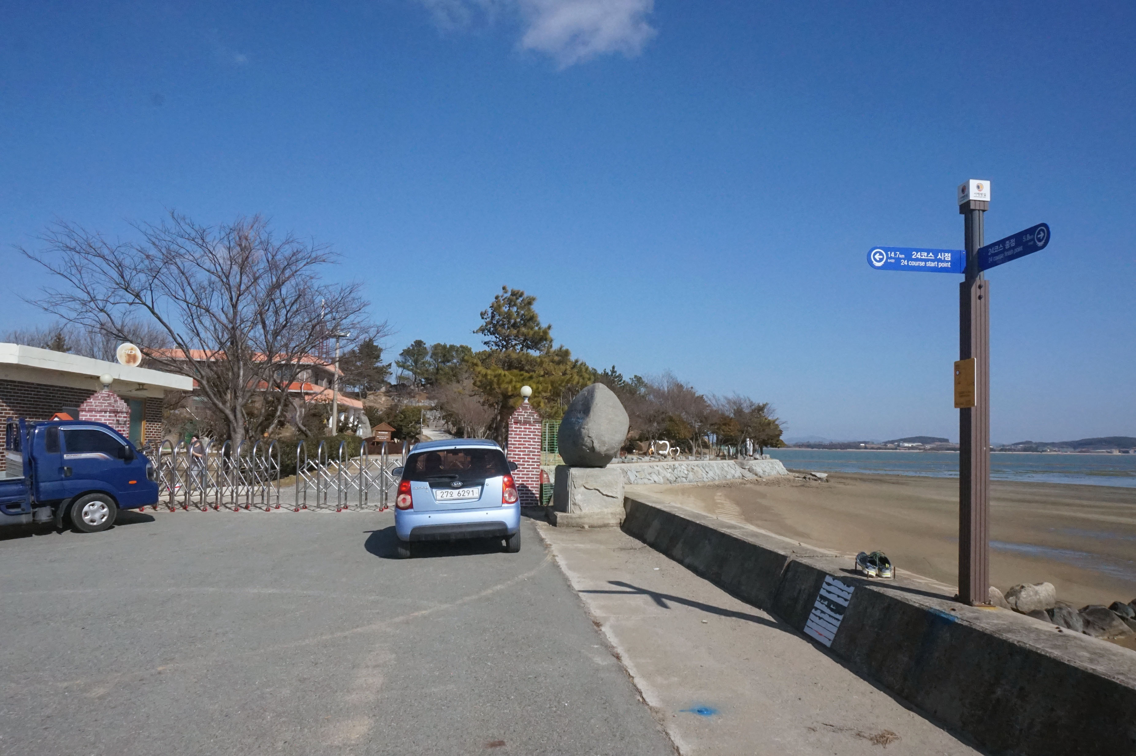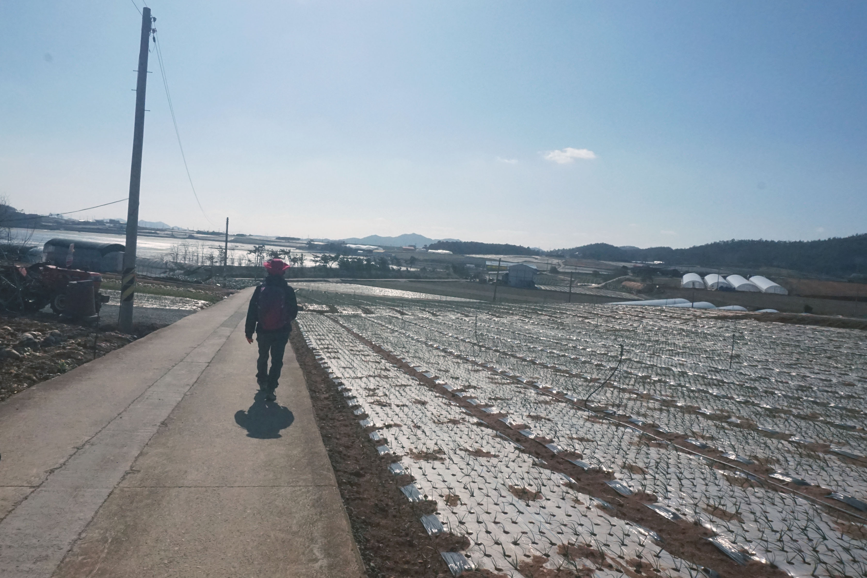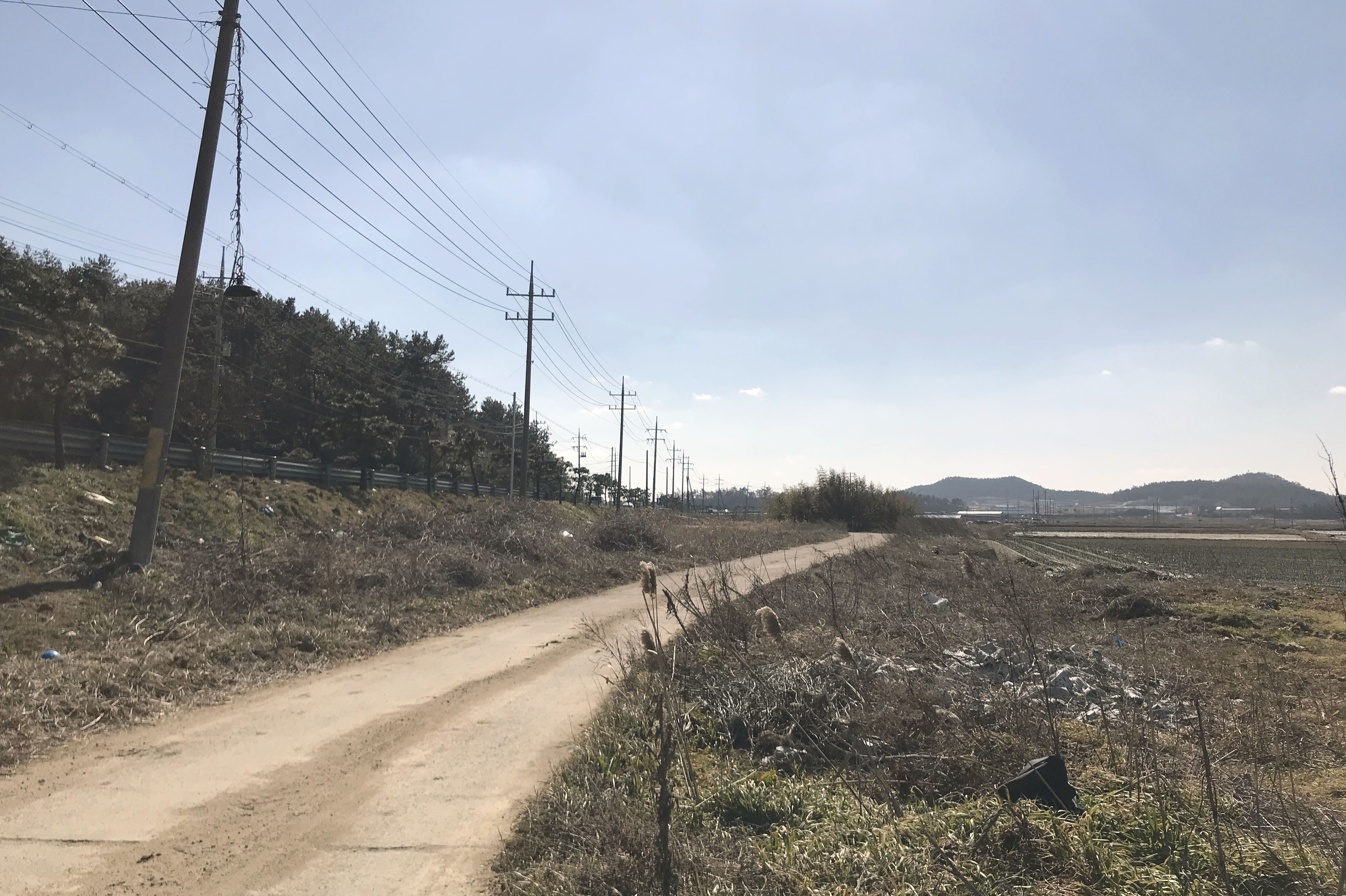 < 11:21, 방조제 제방 아랫길로 걸어 >
