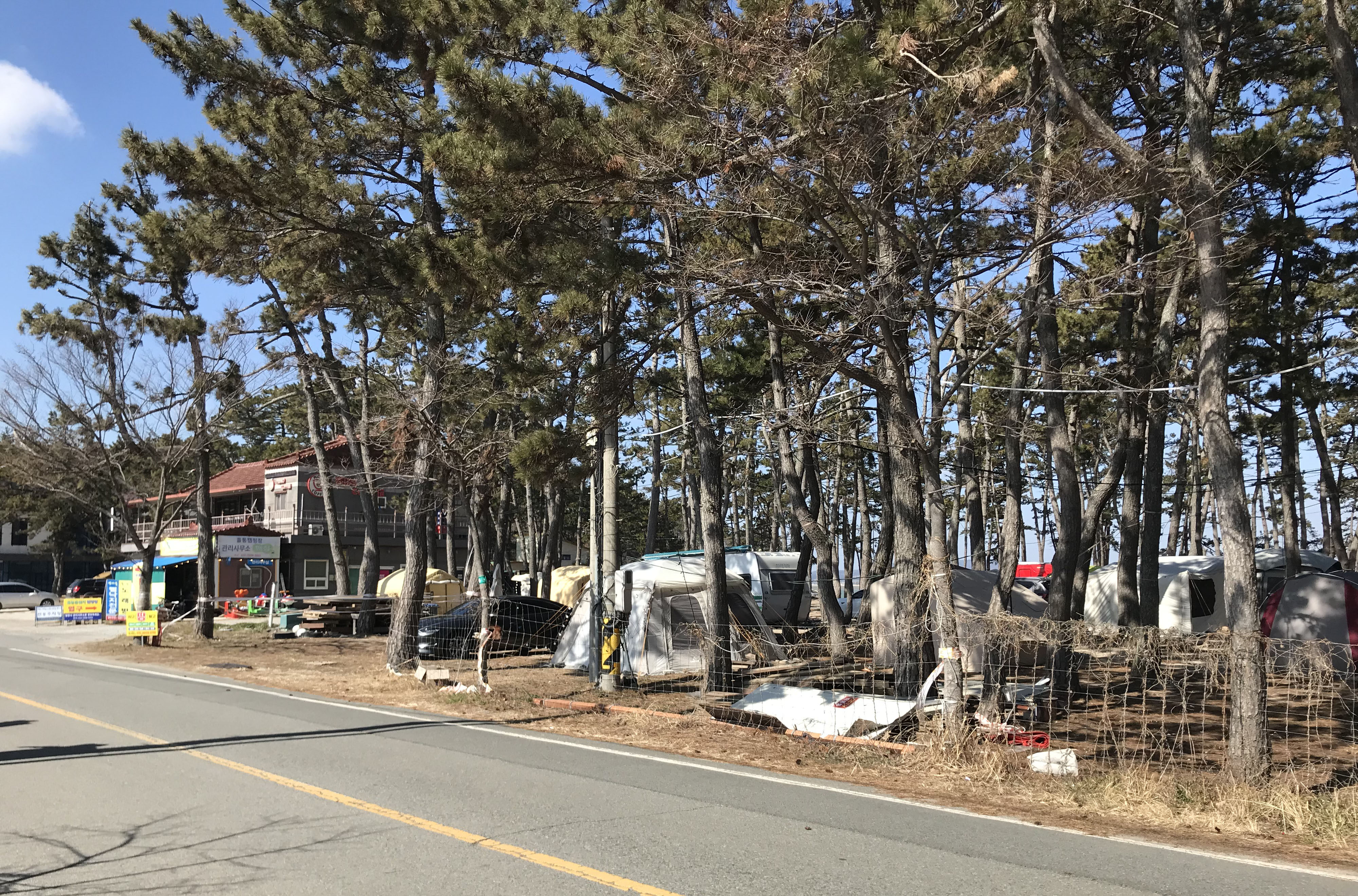 < 12:30, 카페와 캠핑촌 건너편에 해수욕장(유원지) >