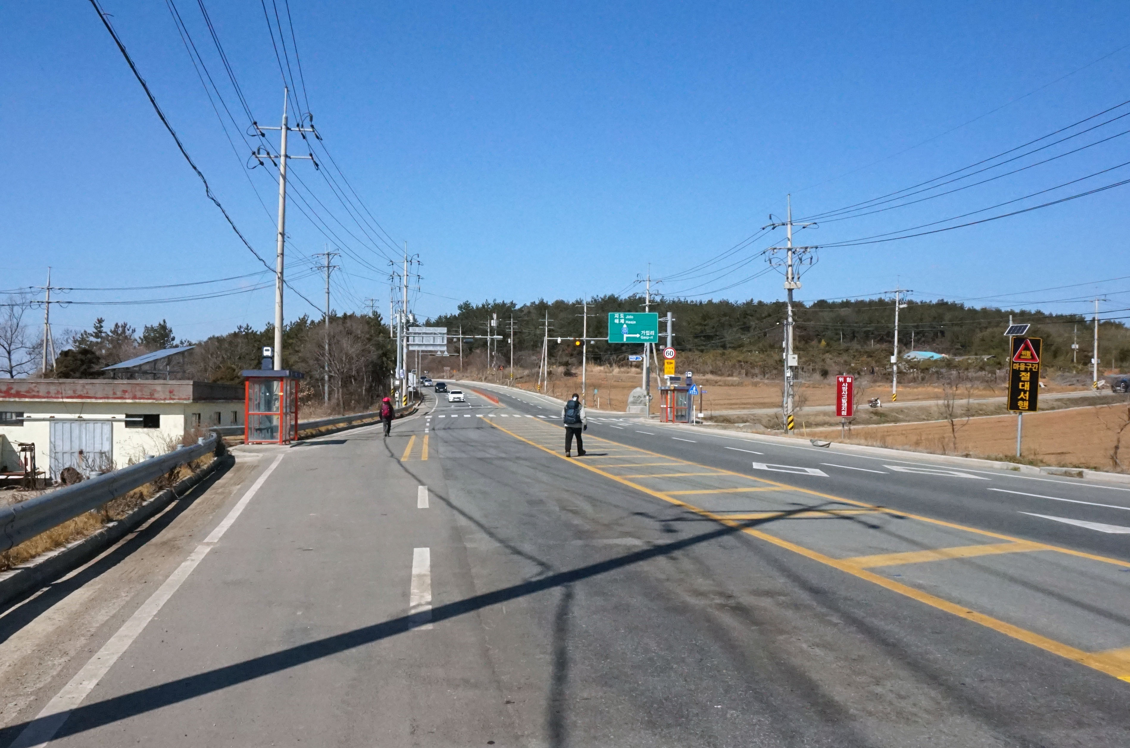 < 13:57, 유월리 입구(물암 버스정류장)에서 현해로를 건너 >