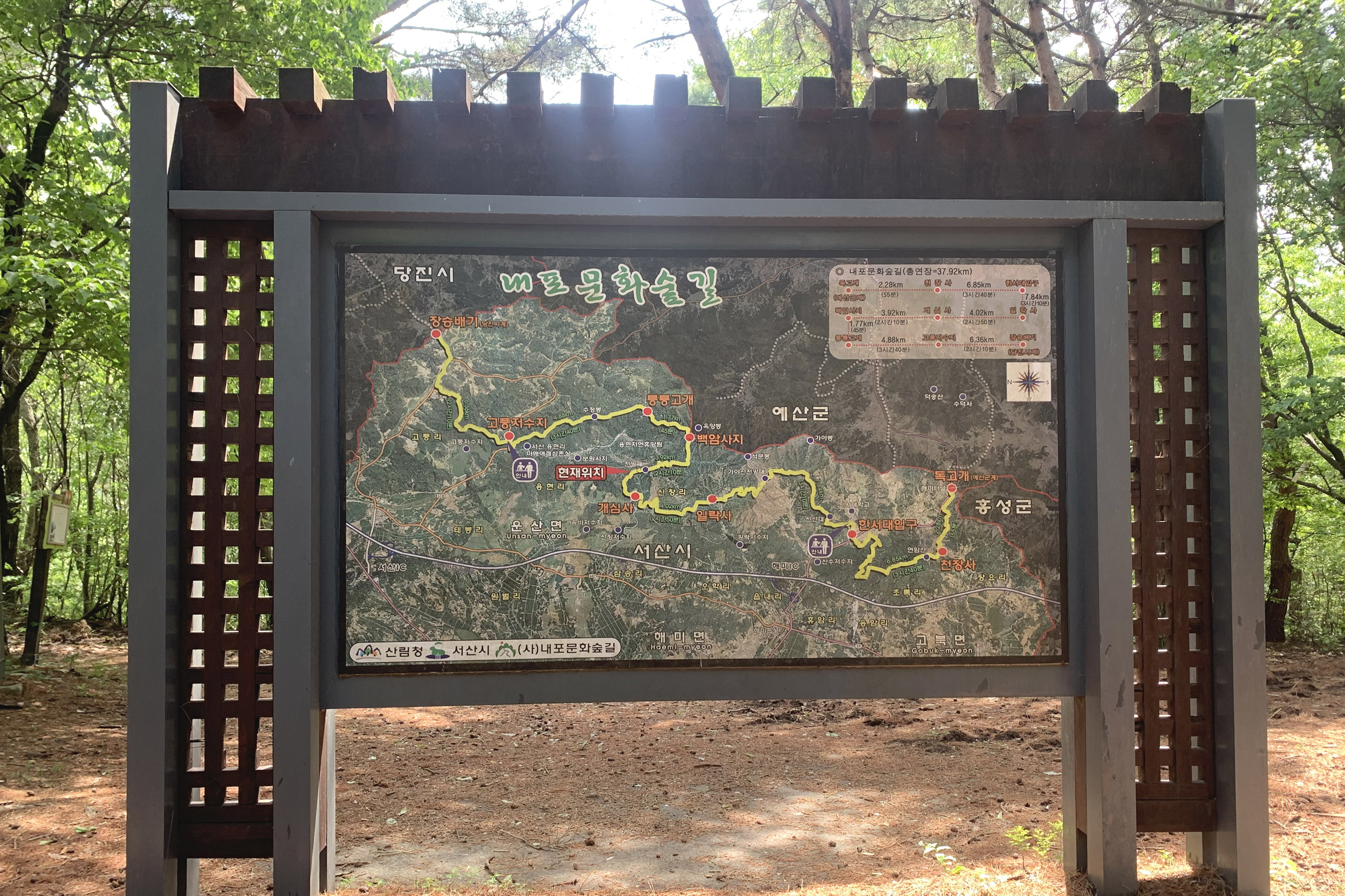 < 11:14, 상왕산 능선 쉼터에 세워진 내포문화 숲길 안내도 >