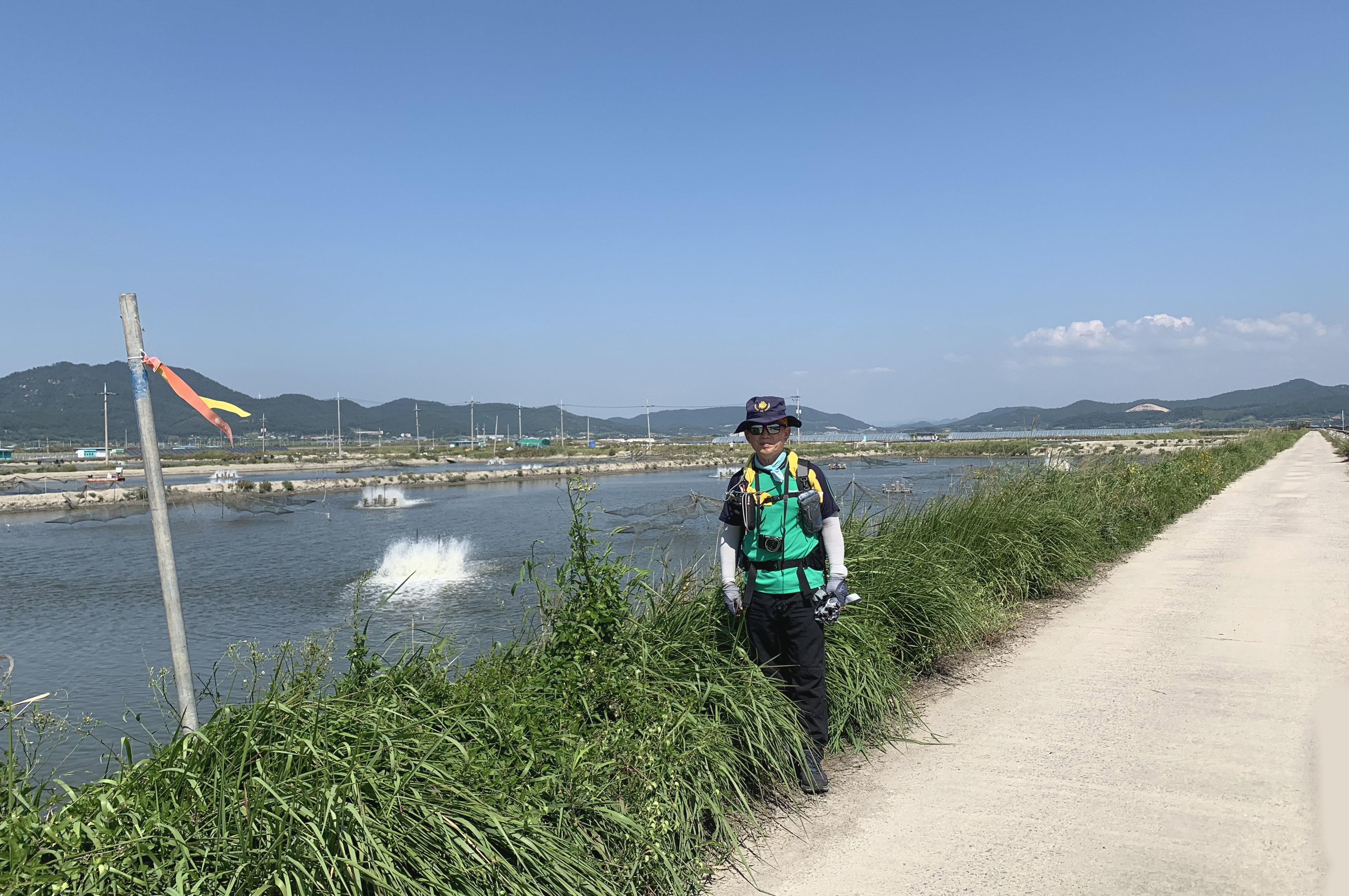 < 14:03, 새우양식장을 배경으로 중간 인증 샷 >