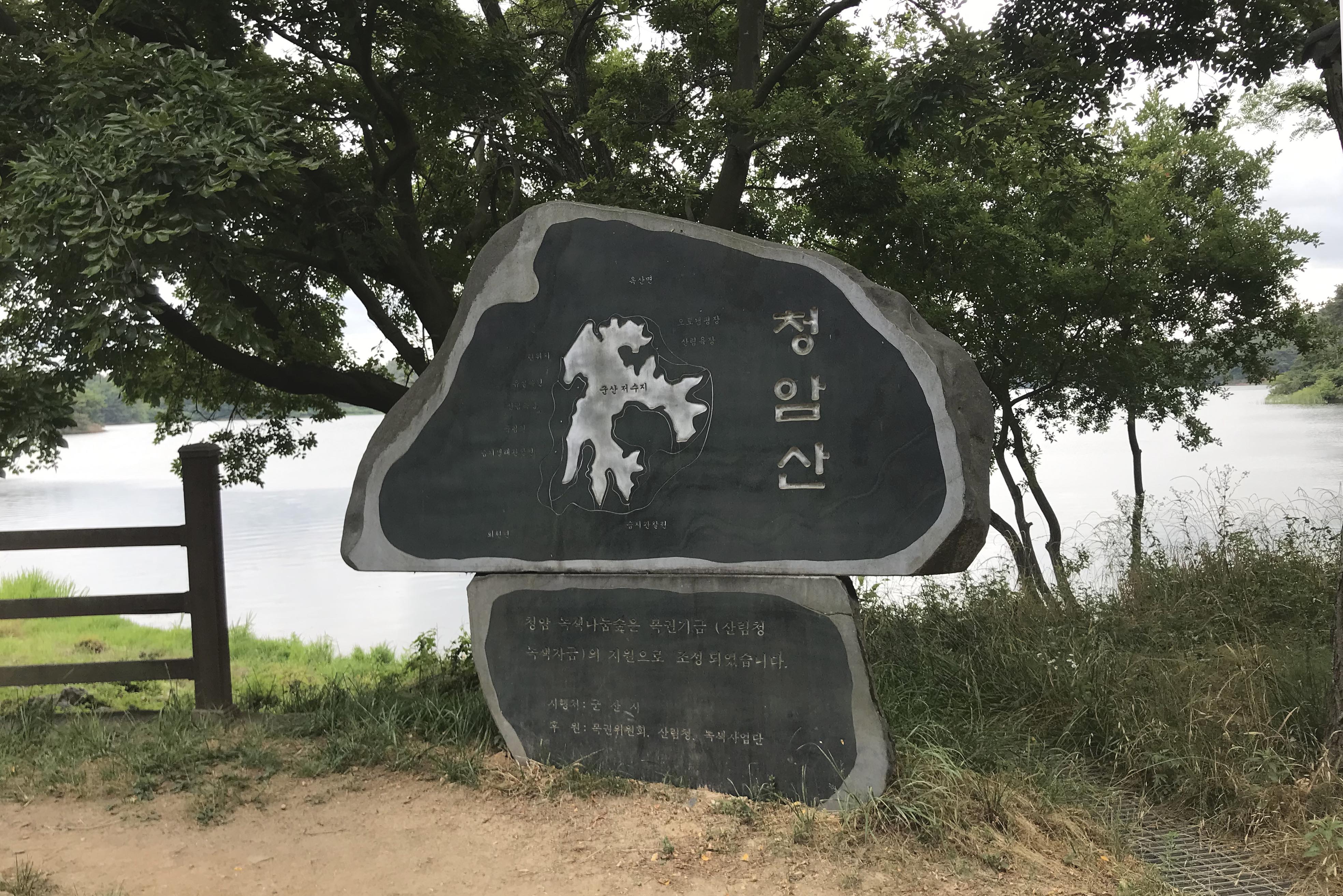 < 13:31, 호수가에 세워진 청암산 표시석 >