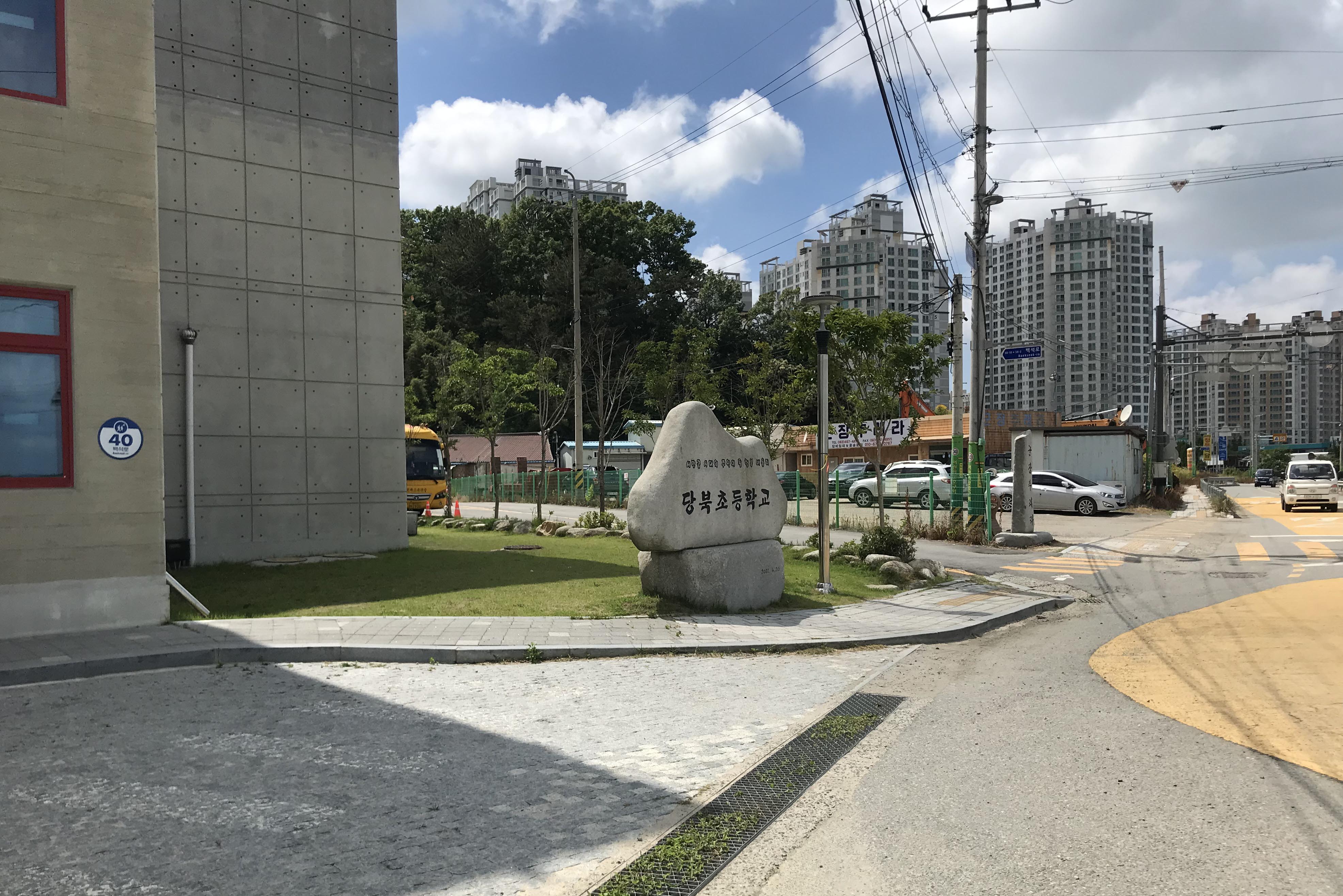 < 14:27, 당북 초등학교는 측면으로 지나고 >