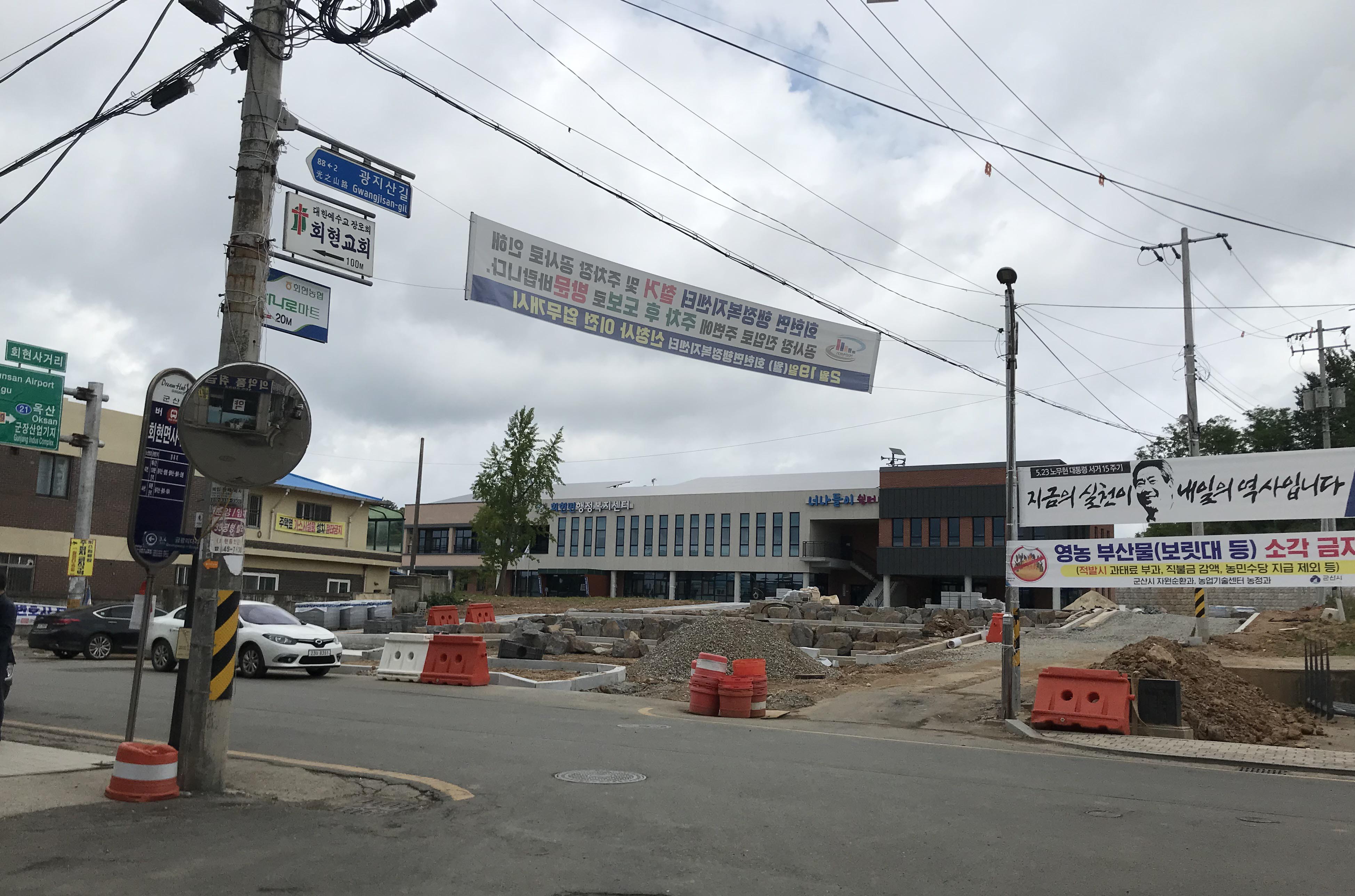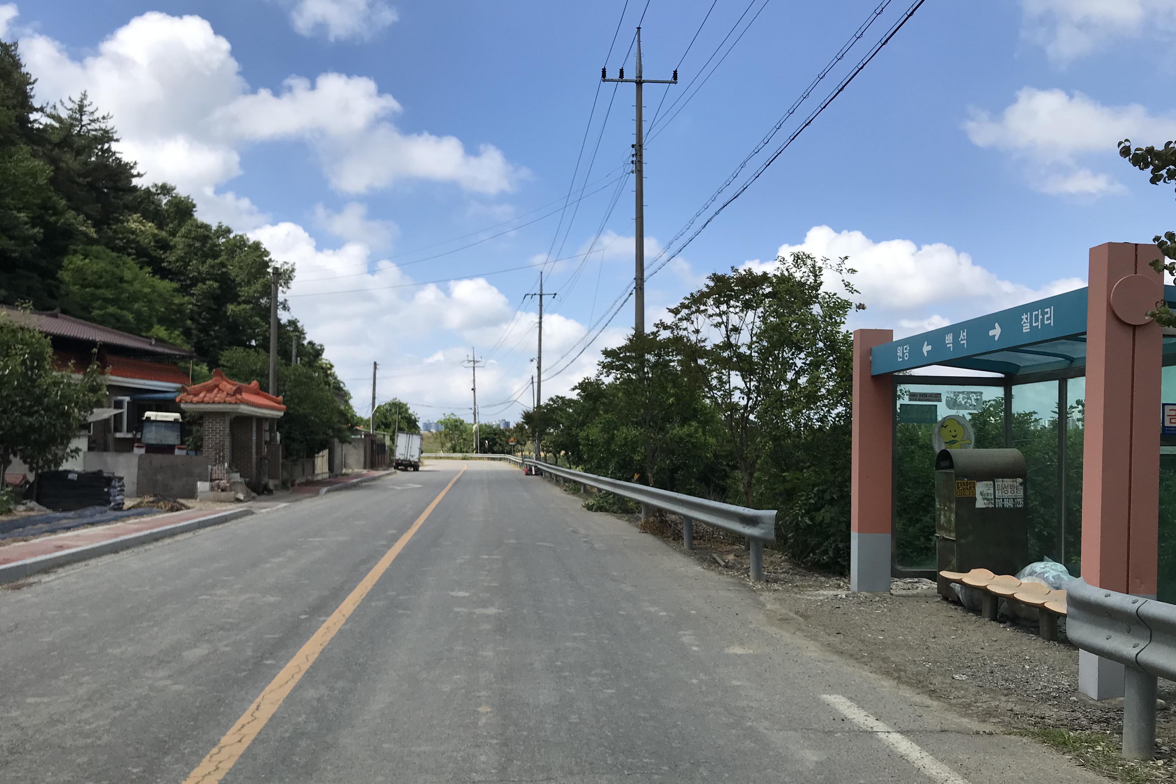 < 14:15, 옥산리에서 당북리(堂北里)로 바뀌는 백석로의 백석 버스정류장 >