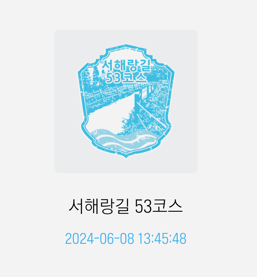 < 올댓 스탬프 앱의 53코스 완주 배지 획득 캡처 >