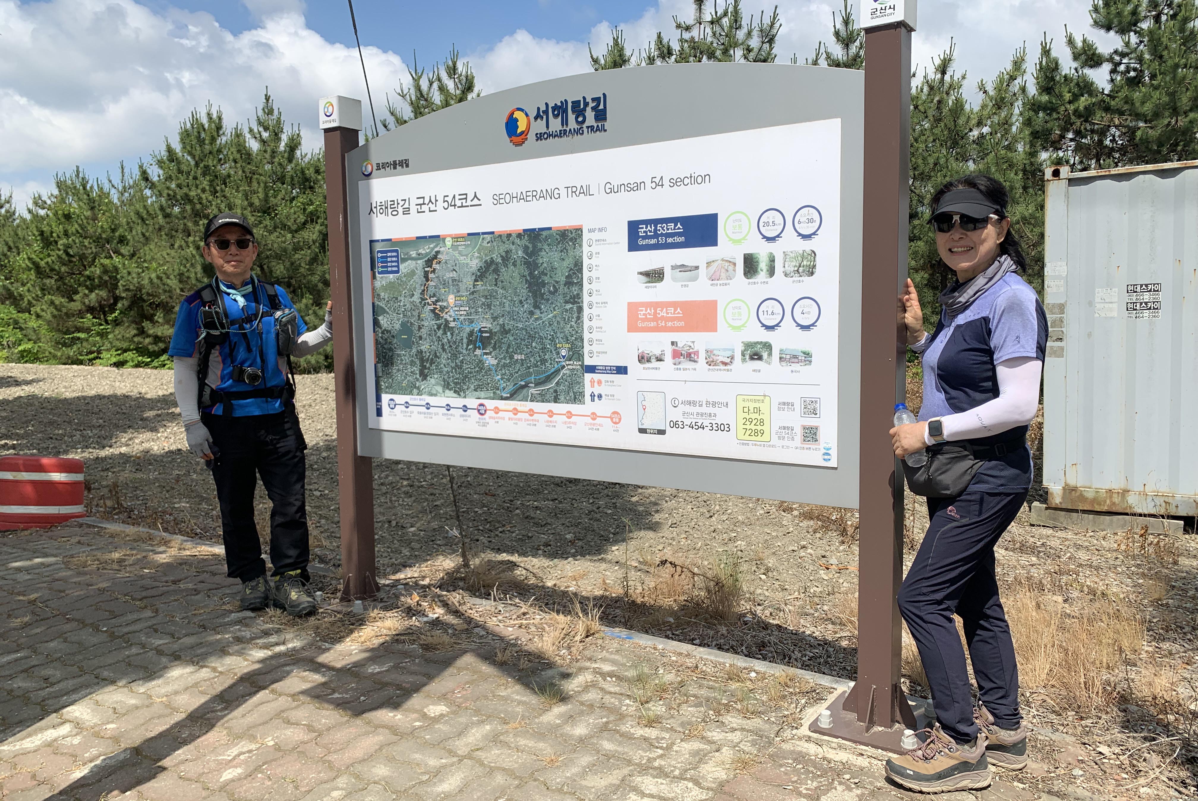 < 14:33, 서해랑길 53코스 종점(54코스 시점) 안내판과 함께 >