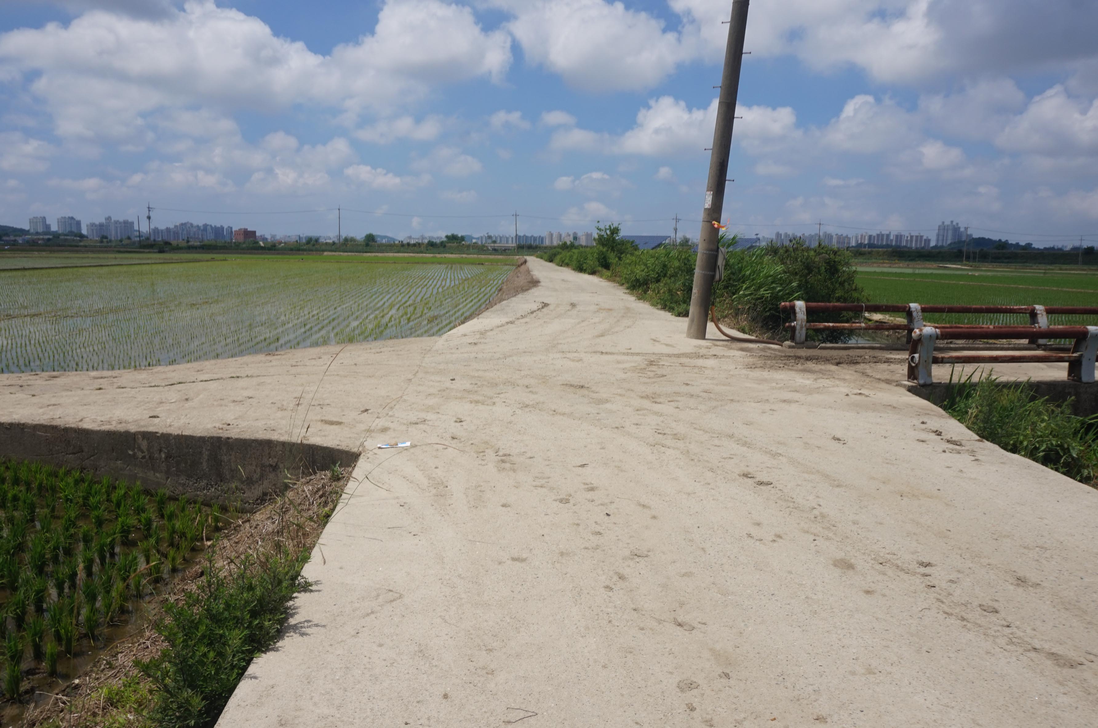 < 13:51, 군산 시내 건물을 바라보며 석교 들판 농로를 걸어 >