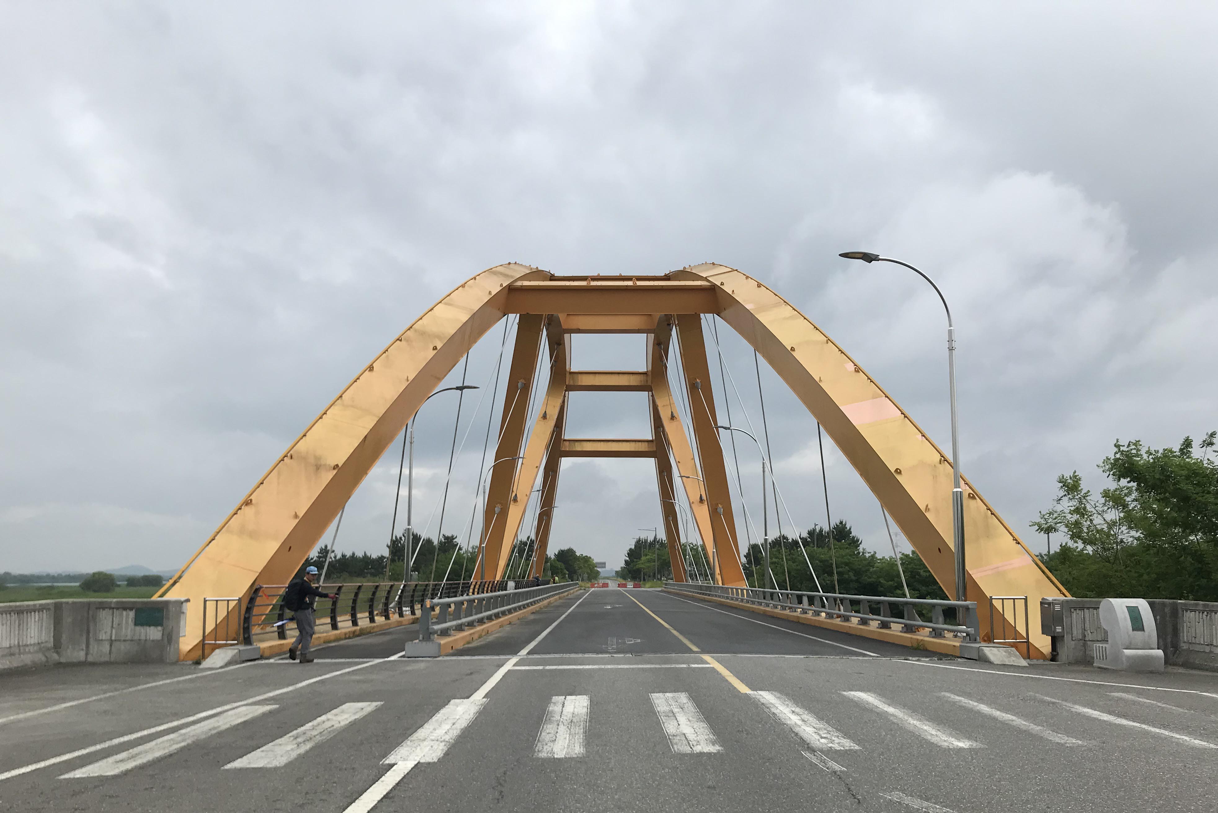 다리를 건너기 위해 산책로에서 도로로 올라오면서 군산시 대야면(大野面) 지경리(地境里)에서 회현면(澮縣面) 증석리(曾石里)로 바뀐다. 증석 교차로에 이어 증석교를 지나는데, 하늘에는 금방 소나기라도 퍼부을 듯 먹구름이 몰려온다. 일기예보로는 비가 내린다하여 준비는 하고 있지만, 지금까지 비가 내리지 않은 것처럼 계속 되기를 바란다. 오히려 비는 오지 않고 바람마저 불어주니 더위를 모르게 시원하게 걷는다. 코스 위 도로로 걷던 몽중루님께서 산책로를 걷고 있는 우리부부에게 멋진 사진을 찍어주신다. 감사합니다.