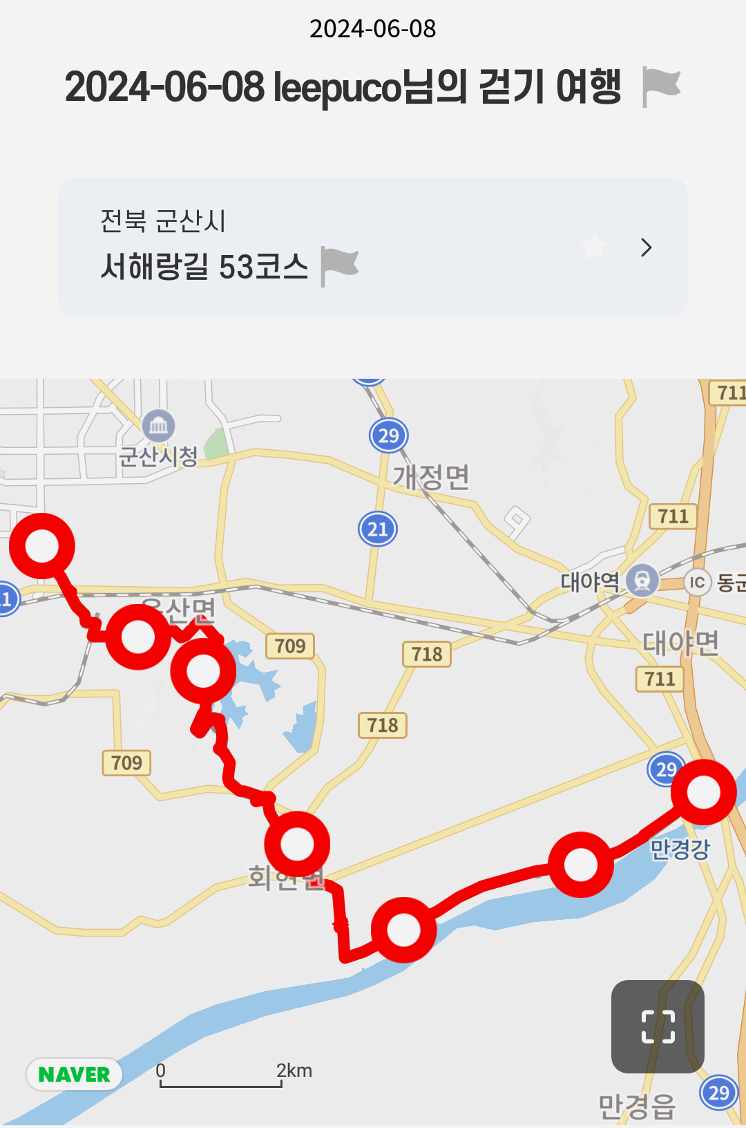 < 두루누비 앱의 53코스 완주, 필수경유지 통과 따라가기 캡처 >