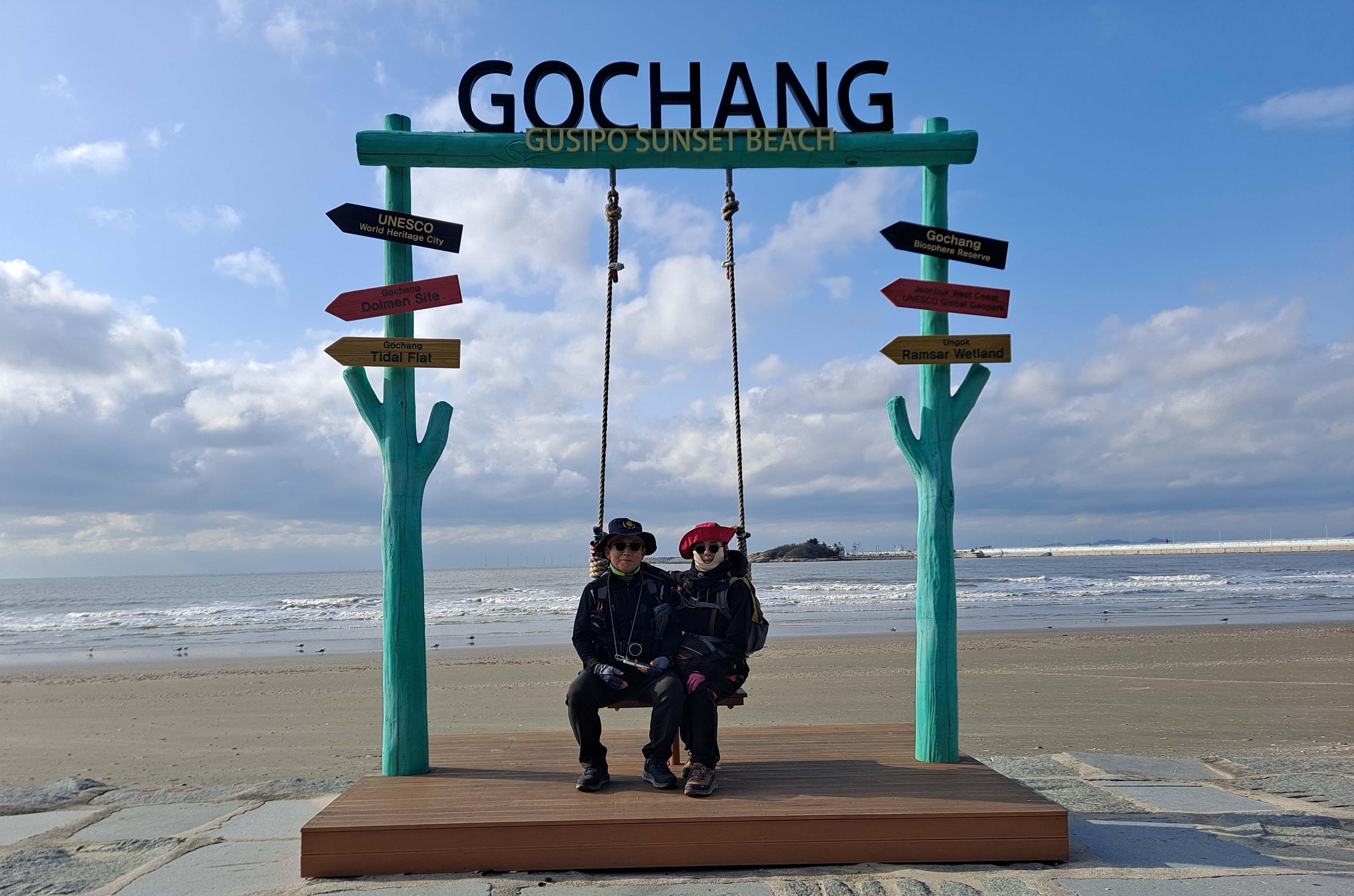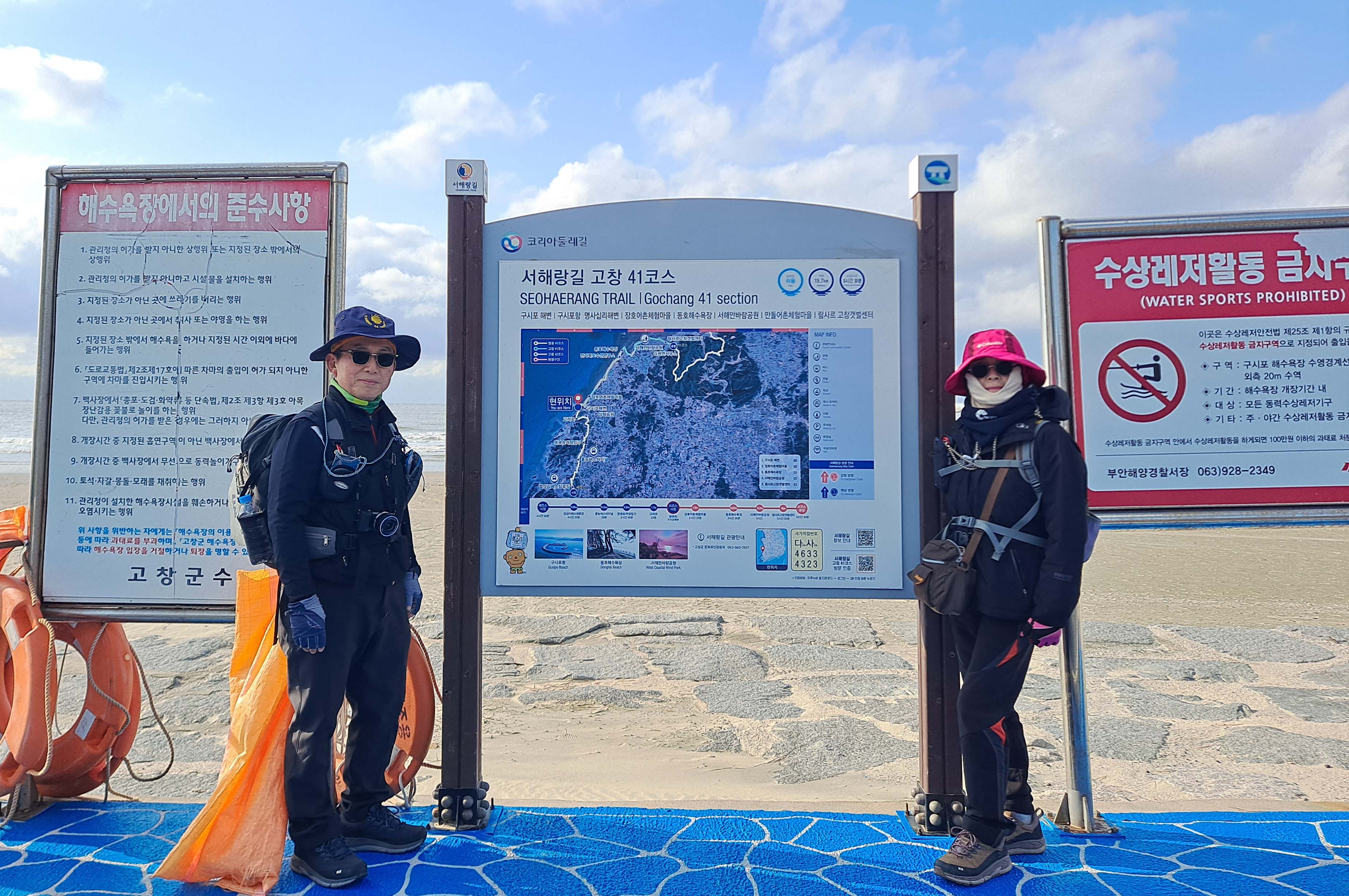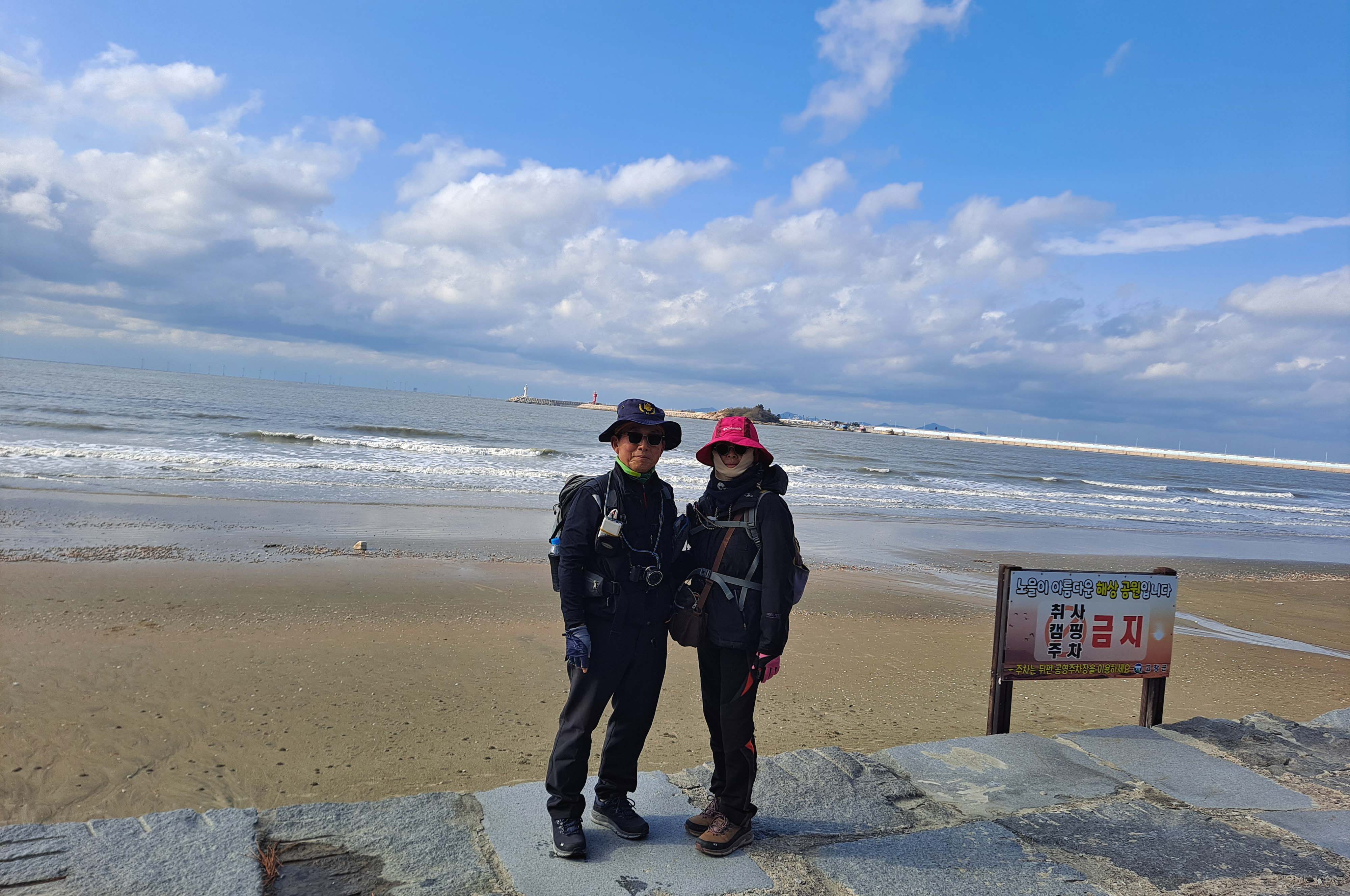 일반인에게 잘 알려지지 않아, 서해랑길을 걸으면서 처음 찾은 해수욕장이다. 주변에 음식점과 숙박시설 그리고 위락시설까지 잘되어, 추운날씨에도 많은 여행객들이 찾고 있다. 해변에는 해수욕장을 홍보하는 안내판과 포토 존 조형물들이 많아 추억을 담느라 시간 가는 줄 모른다. 40코스 종점 및 41코스 시점 안내도가 해변의 다른 안내판들과 함께 있어 무심코 가다가는 지나치기 쉽다. 안내도에서 QR코드, 따라가기 앱, 인증 샷 까지 마치고서 오늘 트레킹을 종료한다. 전라남도 40코스를 완주한 뒤풀이가 회원의 배려로 즐거운 식사가 된다.