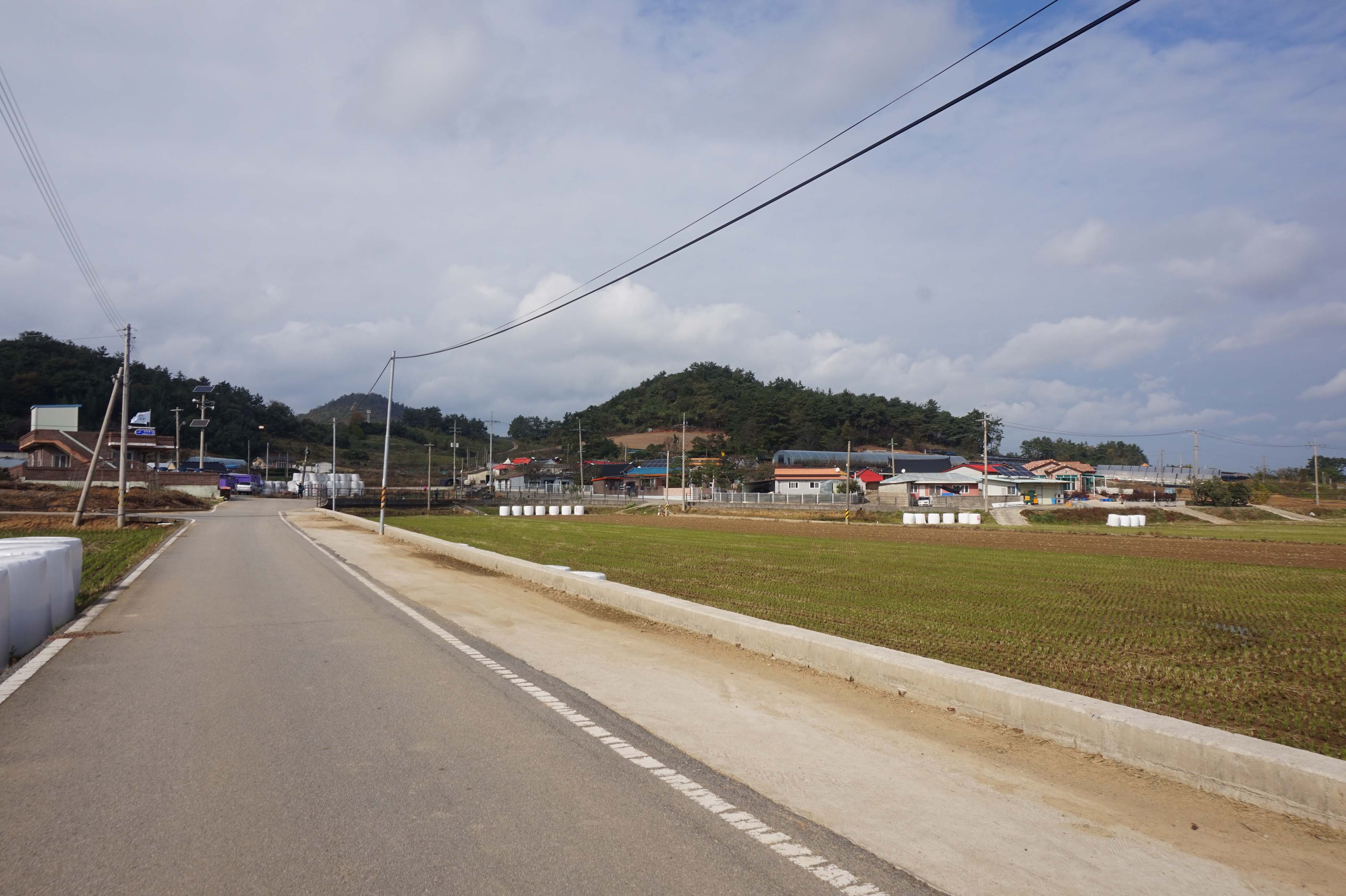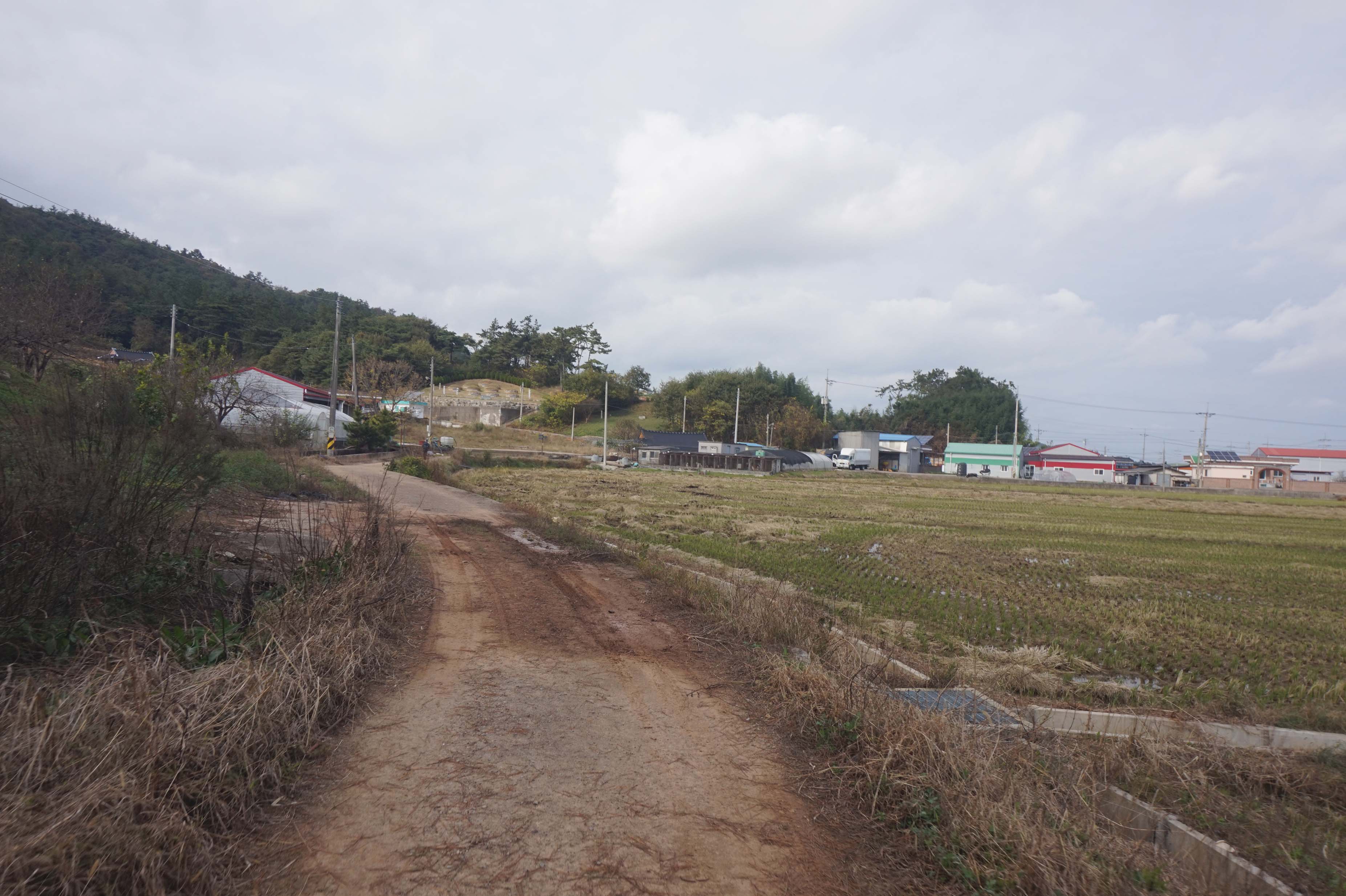 < 12:36, ①번 필수경유지 통과, 마을 앞 들 길 따라 멀리 홍농읍 소재지 >