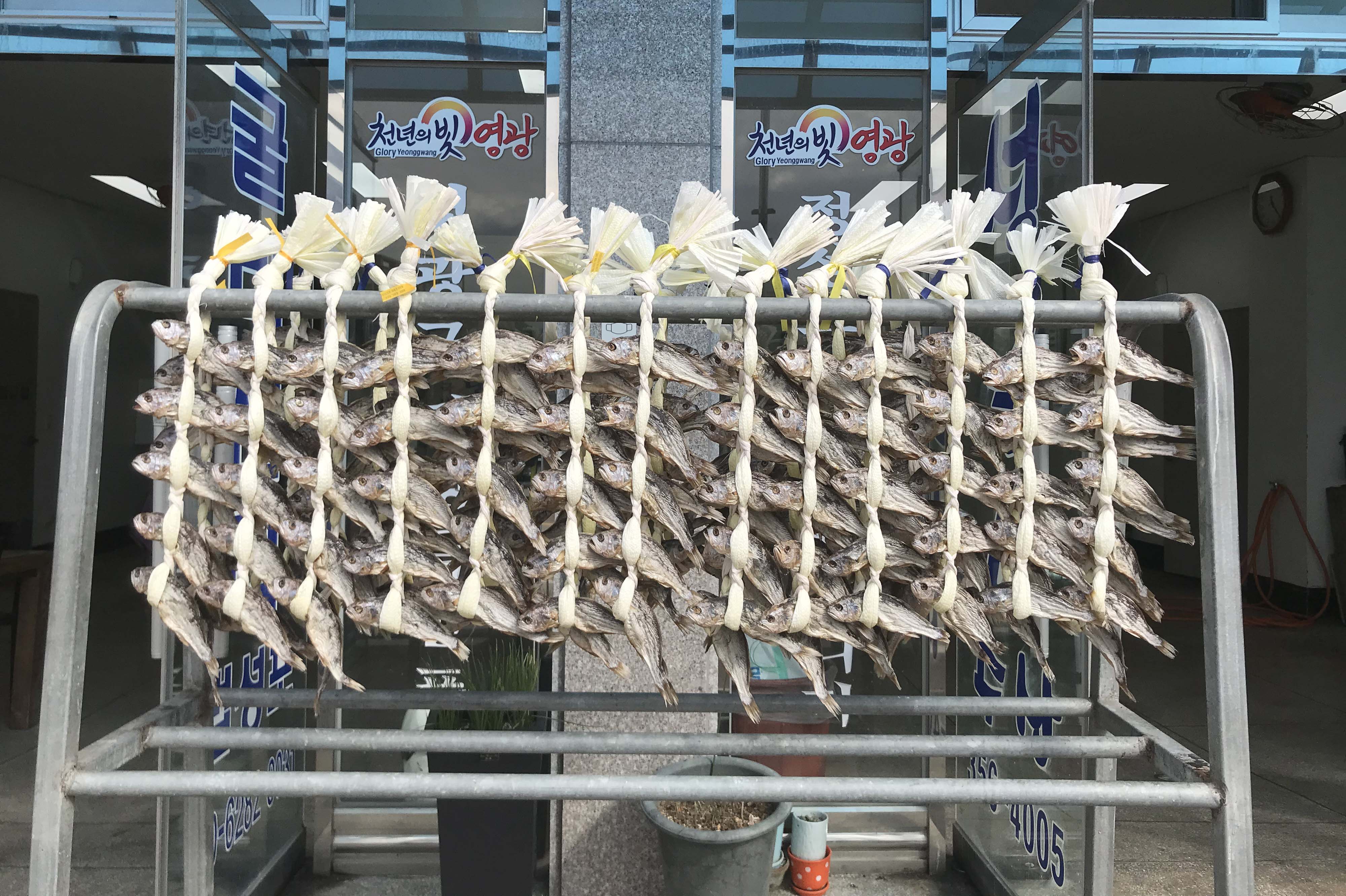 < 11:28, 법성2교 앞에서 우측 방향으로 가는 길가 판매장 앞 굴비 >