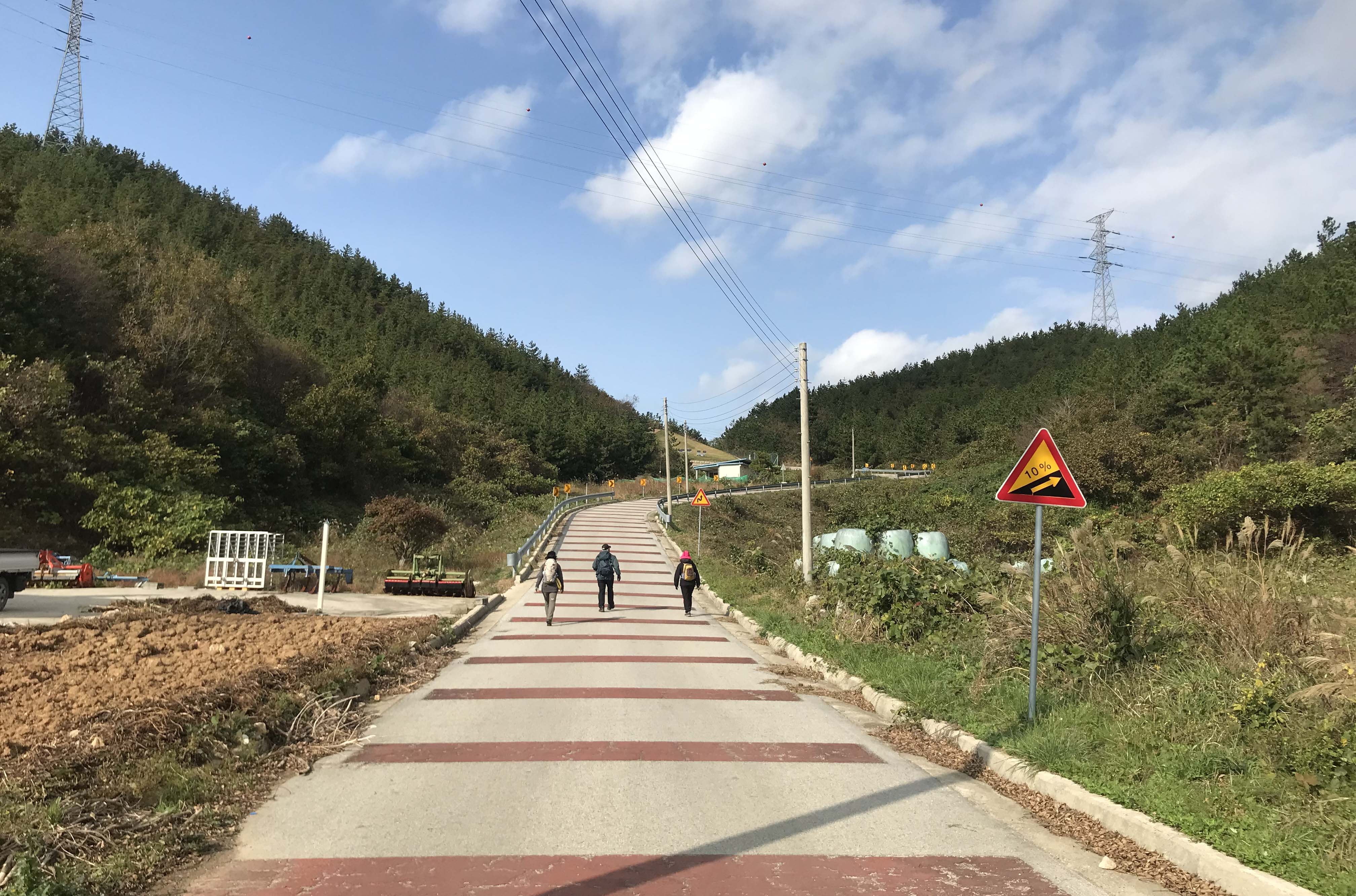 < 13:33, 진덕로 차도를 건너(이정표: 종점 4.6km) >