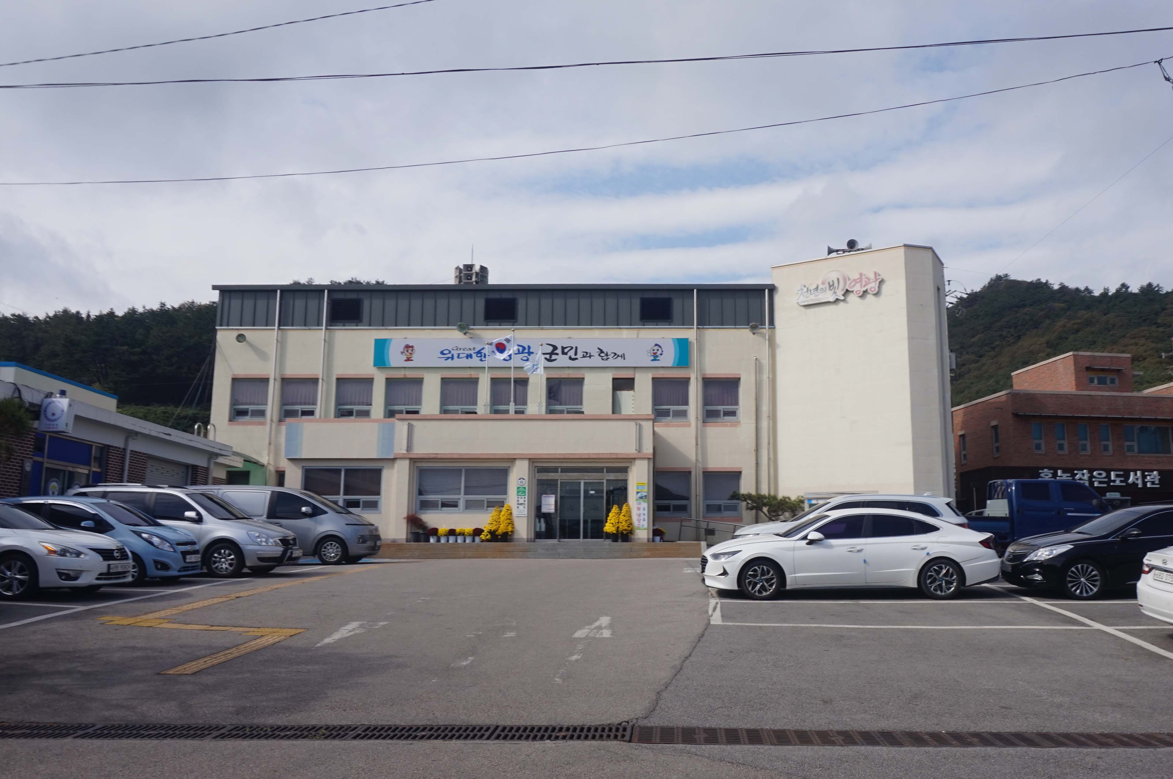들판 평야지대서 수확한 벼의 수급조절을 위한 정부의 수매량을 관리하는 대규모 미곡처리장으로 보인다. 그 앞에 버란계 버스정류장이 있는데, 명칭 뜻을 이해할 수 없다. 두루누비 앱 따라가기 ①번 필수경유지를 통과하는데, 휴식시간 제외하고서 54분이나 걸리는 먼 곳에 있다. 동네 꽃밭에서 보이는 고층 아파트들이 홍농읍 면소재로 보인다. 홍농로 차도를 만나 홍농읍 읍소재지(상하리) 시내로 진입한다. 차도에서 좌측 중심거리로 이동하니, 홍농읍사무소에 이어서 굴비골 농협하나로 마트점이 있는데 앞에 붙은 굴비골 이름이 특이하다.
